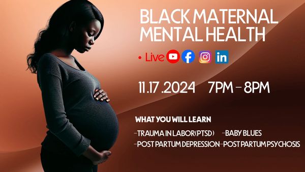 Black mothers and birthing persons have a higher risk of mental health issues pre, during and post delivery. In this webinar we will look at some of the things that impact health care such as structural racism, obstetric racism, perinatal mood disorders etc.